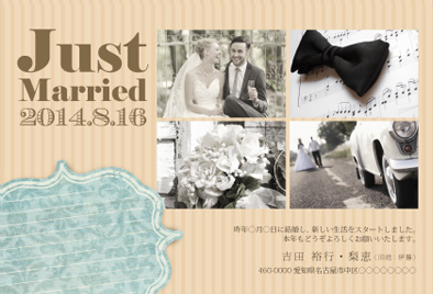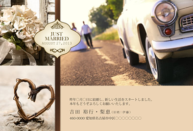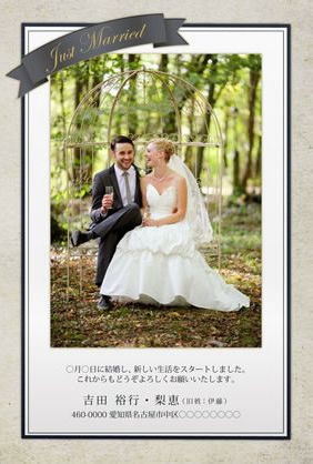 Just Married Card Design No.03 sora(gallery)オリジナルのJust Married Card(結婚報告ハガキ)デザインです。 結婚報告をオシャレでクラシック感のあるヴィンテージデ […]